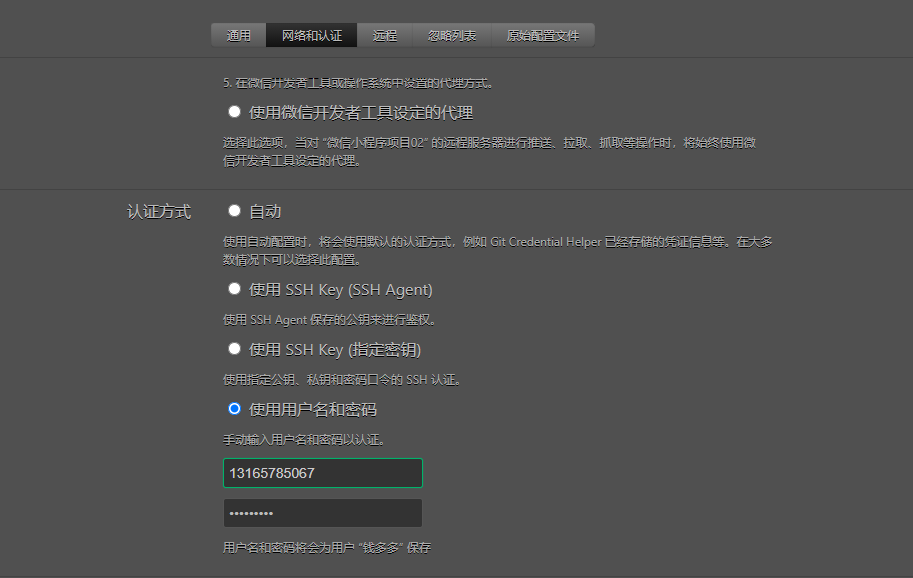 11.选择认证方式(我选的是用户名密码登录,就是刚刚注册的git账号密码)