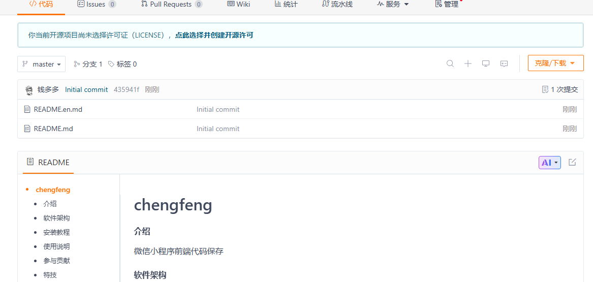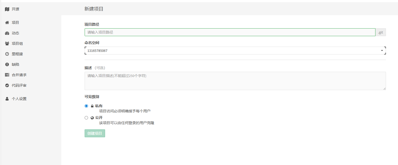 一、进入到gitee官网,点击右侧的+,创建新项目