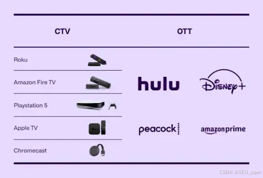 核心区别在于:CTV仅限电视屏幕投放,OTT则可覆盖所有设备。