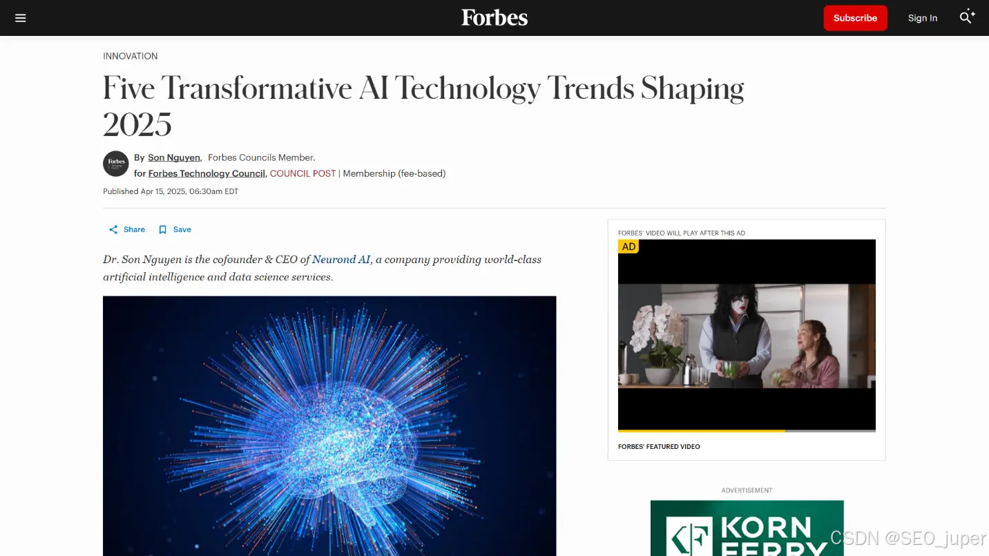 例如:某公司高管撰写的文章——该高管隶属于福布斯理事会(Forbes Council),这是个付费项目,允许成员每年发布固定数量的文章。这类内容看似编辑部原创,实则为付费推广,作者享有保证的发布权。