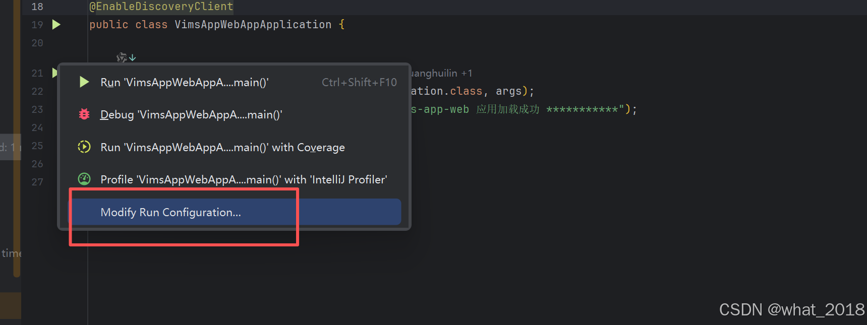 1、在启动类上面有右键选择 Modify RunConfiguration...