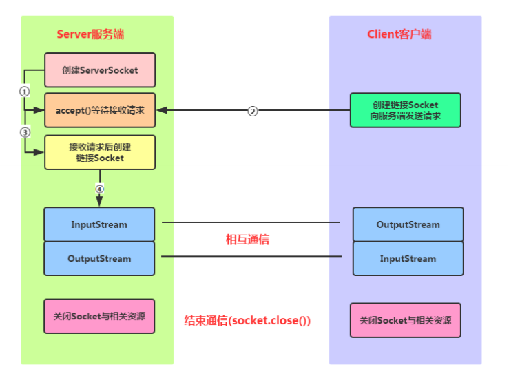 | Socket accept() | 开始监听指定端口(创建时绑定的端口),有客户端连接后,返回一个服务端Socket对象,并基于该Socket建立与客户端的连接,否则阻塞等待 |