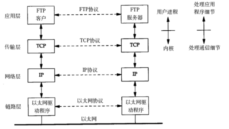 - 应用层:负责应用程序间沟通,如简单电子邮件传输(SMTP)、文件传输协议(FTP)、网络远程访问协议(Telnet)等。我们的网络编程主要就是针对应用层。