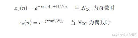 一个长度为 NZC 的ZC序列,其第 n 个元素(n=0,1,2,...,NZC−1)定义为: