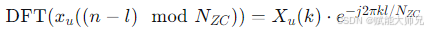 对ZC序列进行离散傅里叶变换后,在频域进行一个循环移位,再变换回时域,等价于在时域进行一个循环移位并乘以一个线性相位。