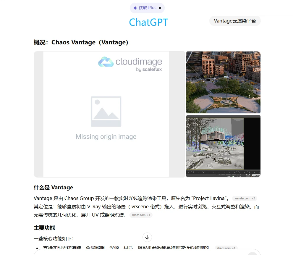 可能是没问对,换个方式试试(中国的chaos Vantage云渲染平台有哪些?)还是一样的结果