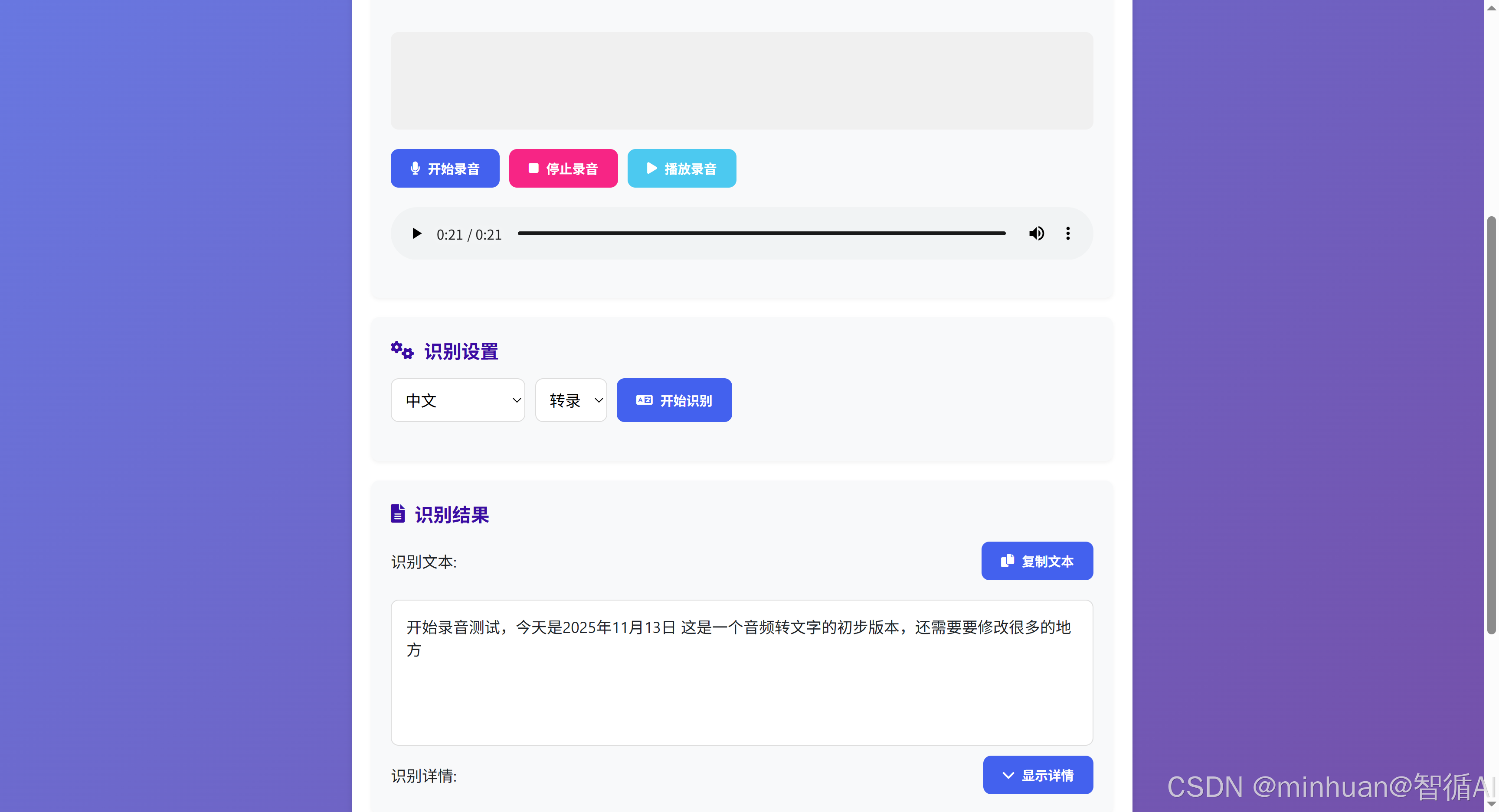 先【停止录音】后,再【开始识别】音频中的文字内容: