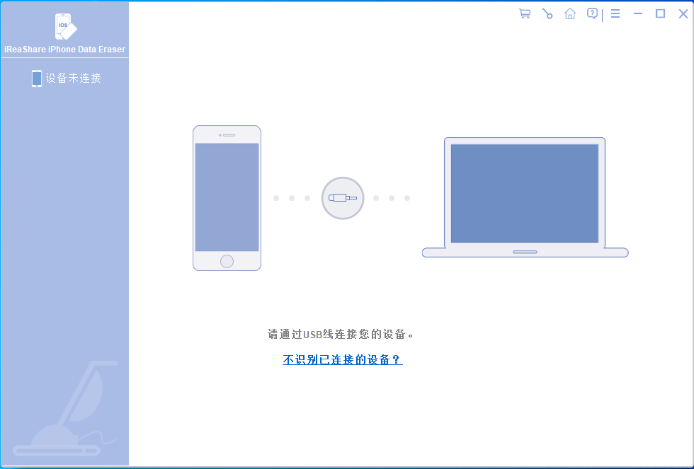 安装完成后,在电脑上启动 iReaShare iPhone 数据擦除器。然后使用 USB 数据线将 iPhone 连接到电脑,并在 iPhone 上点击“信任”。