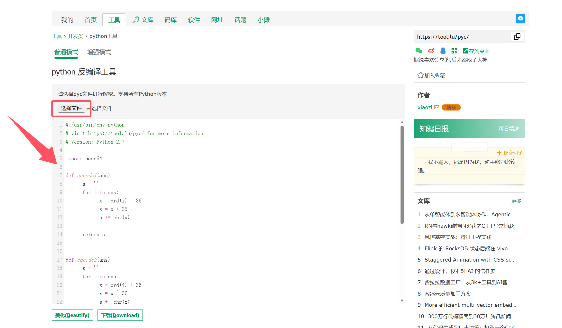 我这里用的是 在线python反编译
