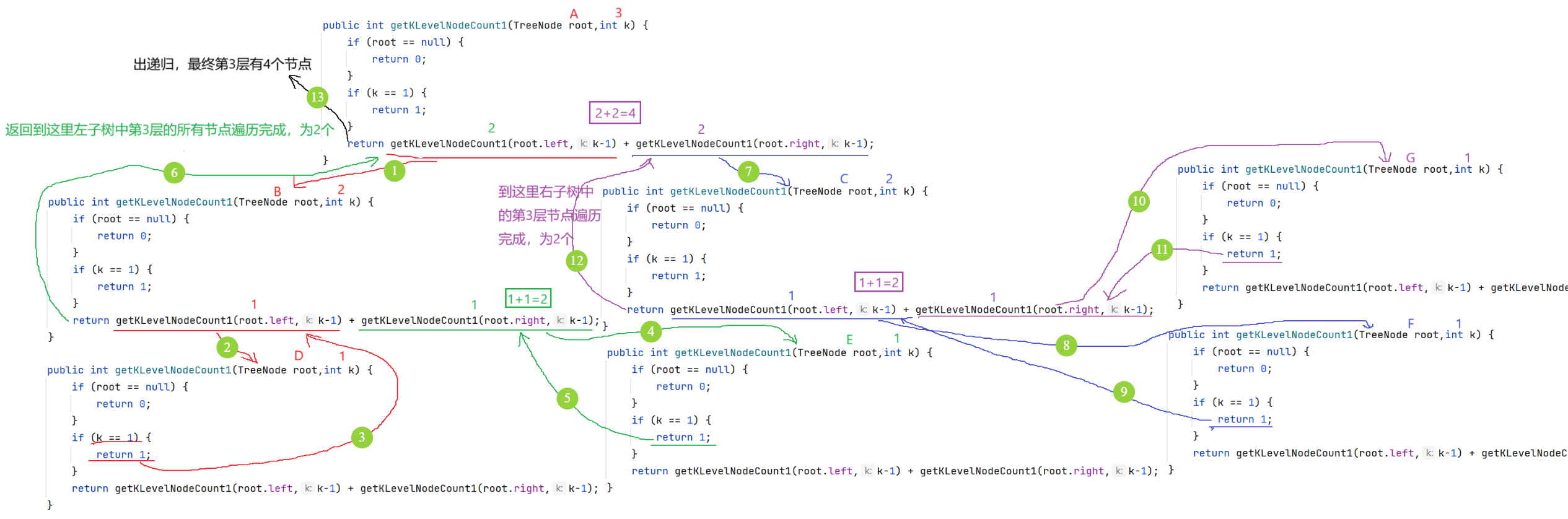 思路2:子问题思路:第K层节点的个数=左子树的第K-1层+右子树的第K-1层