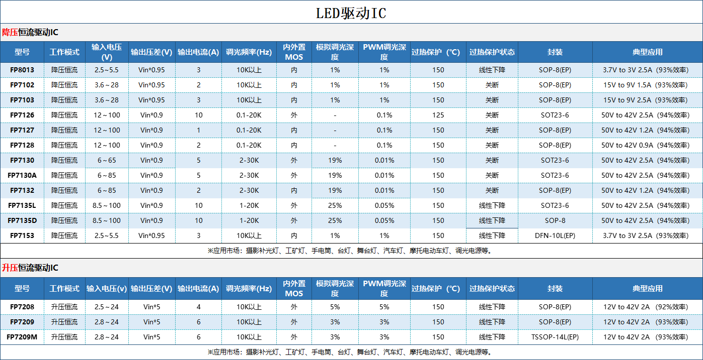 FP7153是一款高性能的同步降压恒流LED驱动芯片,专门为单节锂电池供电的LED照明设计: