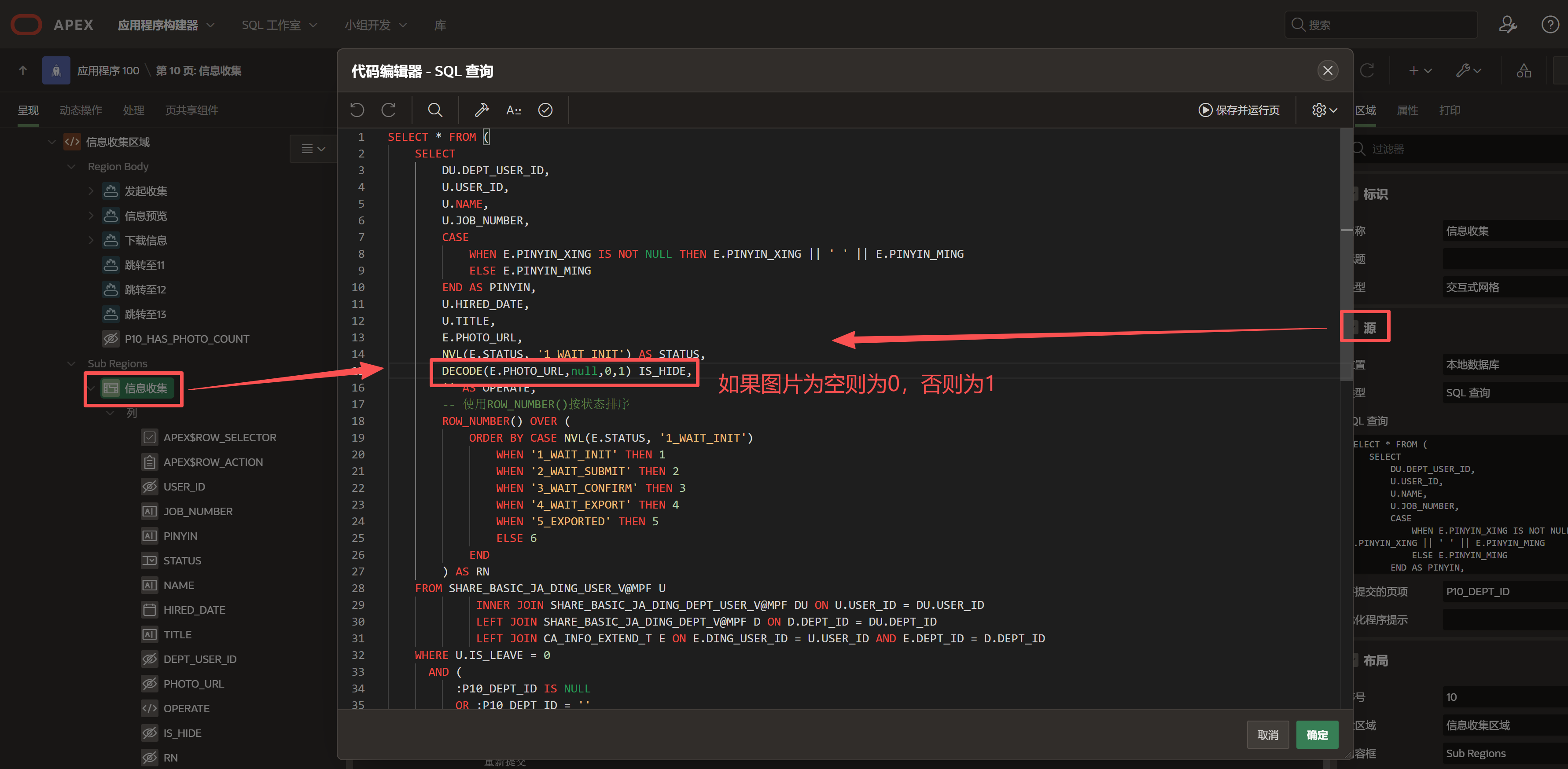 1.交互式网格SQL表达式中判断是否有图片,页设置→源→SQL查询