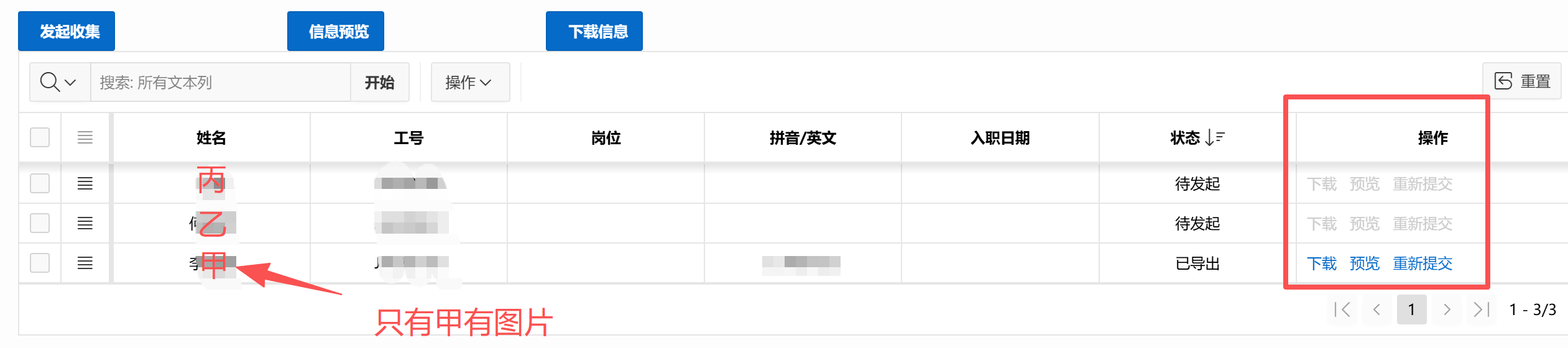 因为预览、下载、重新提交都是建立在有图片的前提下的,所以只有有图片按钮才会显示,否则按钮置灰且无法点击。