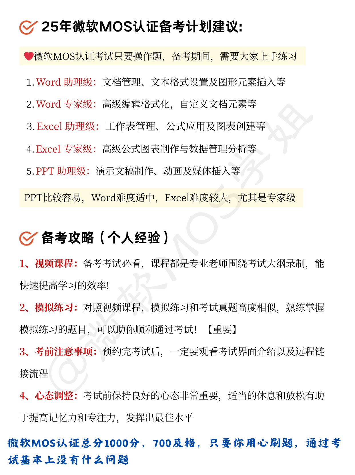 微软MOS认证考试只要操作题,备考期间,需要大家上手练习,PPT比较容易,Word难度适中,Excel难度较大,尤其是专家级