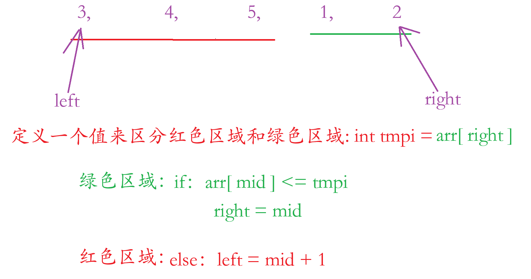 绿色区域:if:arr[ mid ] < tmpi right = mid