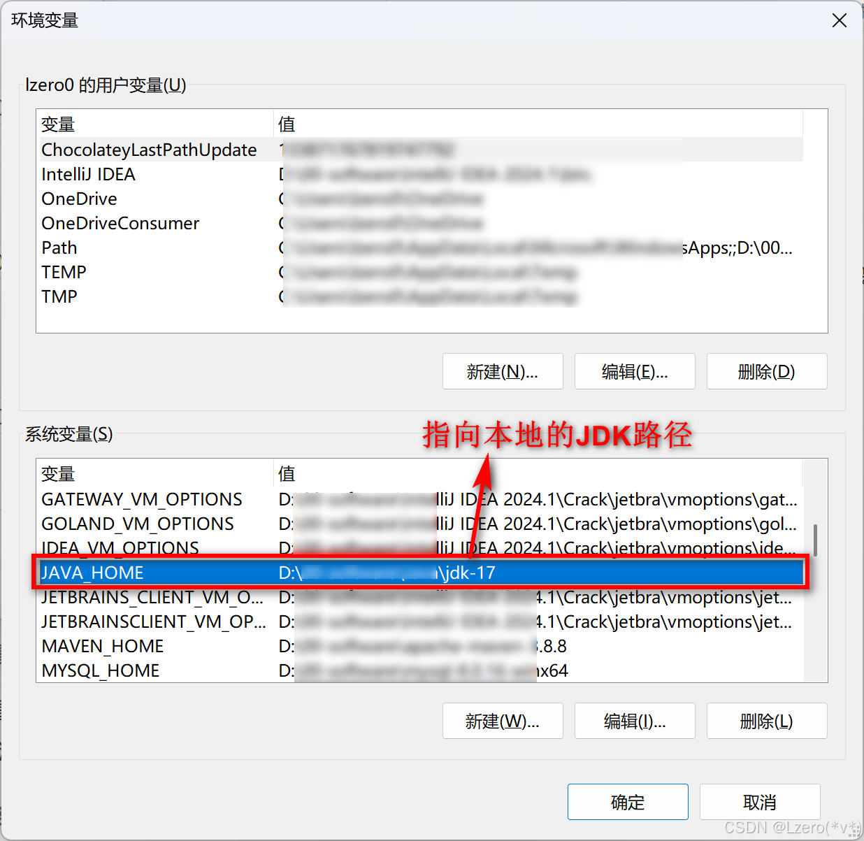- JAVA_HOME:指向自己本地JDK的安装路径