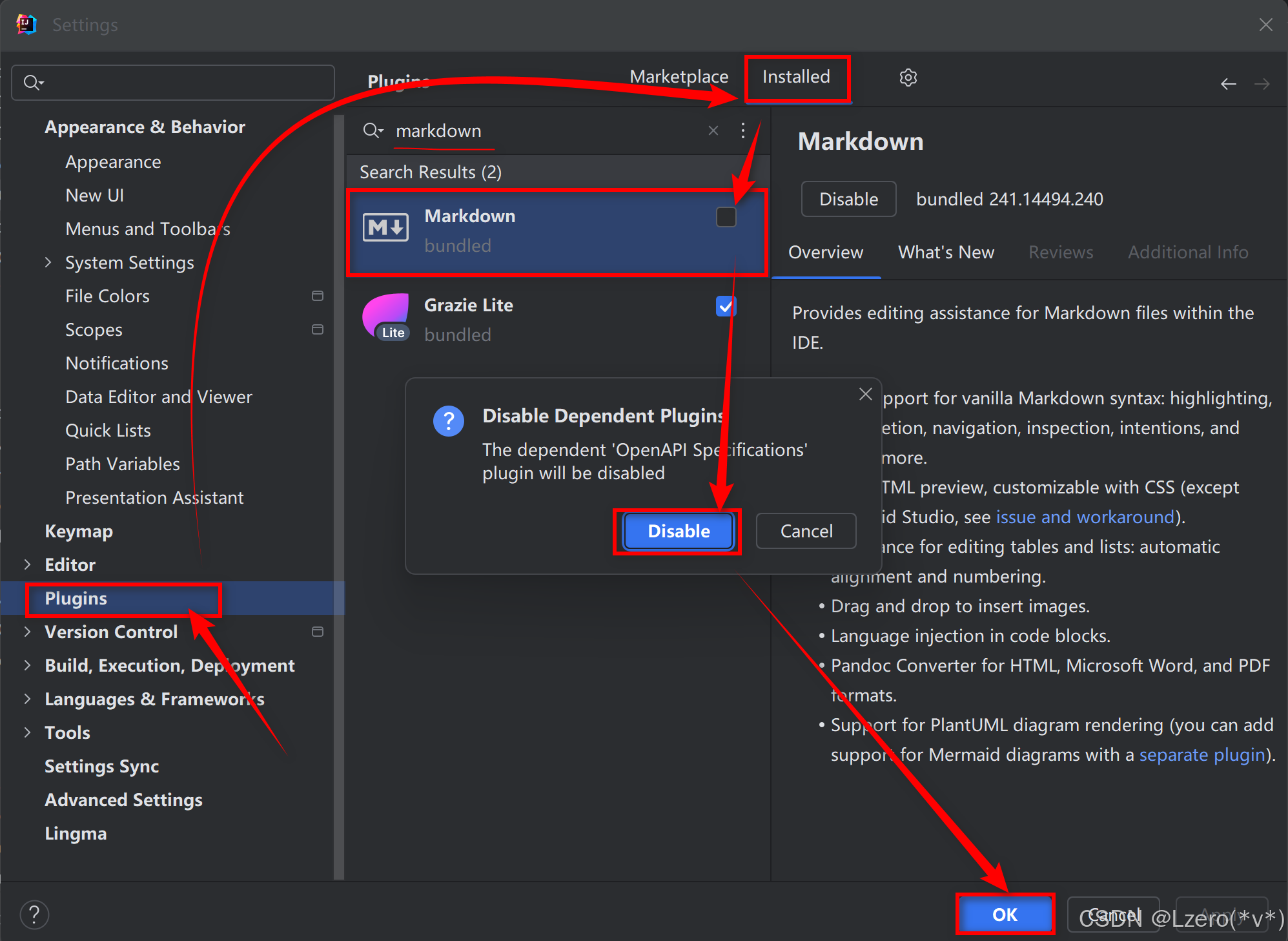 上述情况仍然无法解决,后来怀疑是IDEA中内置的Markdown插件有BUG,尝试在IDEA的插件管理中禁用该插件,然后关闭IDEA,重新打开IDEA,终于不弹报错弹窗了