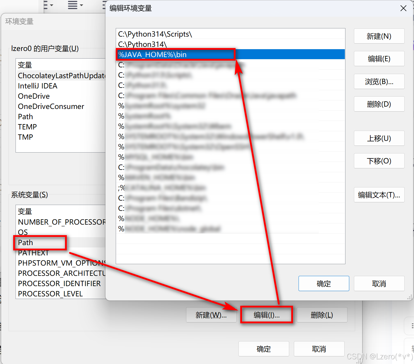 - Windows系统:【此电脑】->右键【属性】->【高级系统设置】->【环境变量】->【系统变量】下进行配置: