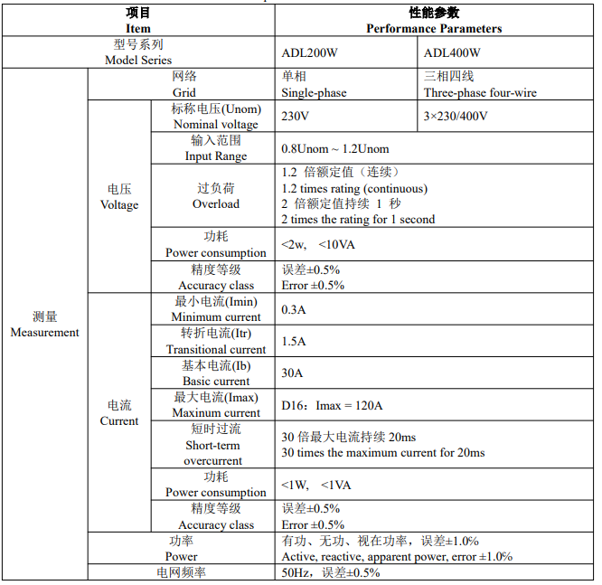 ADL200W ADL400W是主要针对于光伏并网系统、微逆系统、储能系 统、交流耦合系统等新能源发电系统而设计的一款智能仪表,产品具有精度高、体积小、响应速度快、安装方便 等优点。