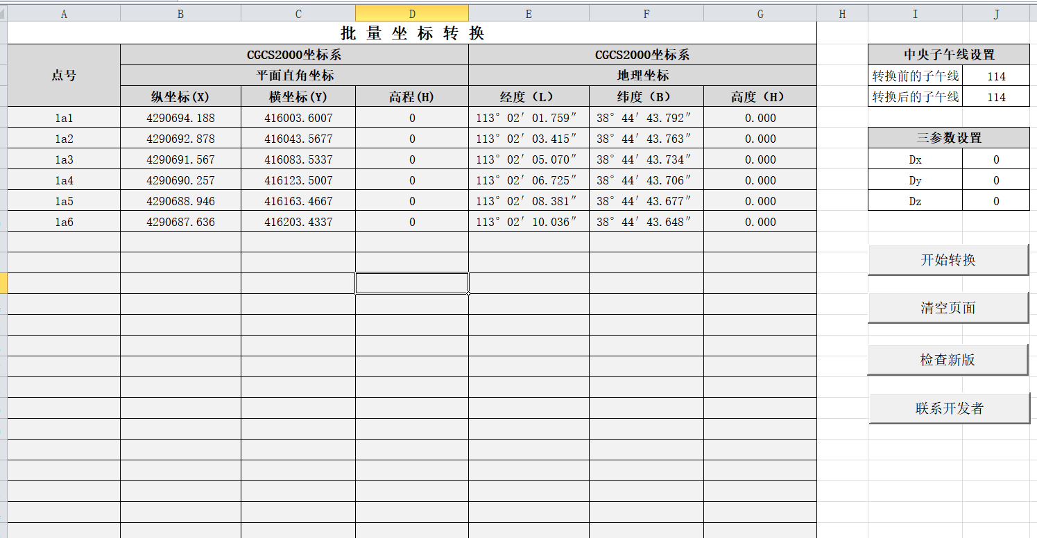 ★本表格基于Excel2010_64位版本,采用vba编写,图形化界面,支持WGS84、北京54、西安80、CGCS2000坐标系之间的坐标互转,支持三度带和六度带的换带计算,支持直角坐标和经纬度之间的互转,功能强大,使用非常简单,适合地质、农林、电力等行业的坐标转换。
