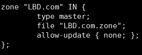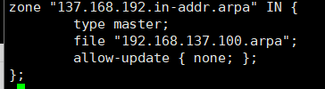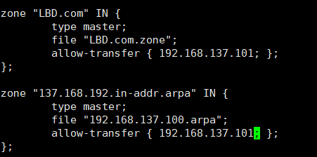 与正反向解析不同,我们需要将原本的allow-query 改成 allow-transfer并且在花括号内输入从服务的IP地址,便于主服务器撑不住了来转发给从服务器。
