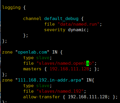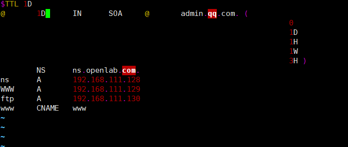 [root@localhost ~]# vim /var/named/named.openlab.com