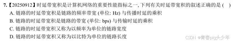 关于时延带宽积概念的考察 时延带宽及=传播时延*带宽(链路所能承受的最高数据传输速率,而不是链路的频率带宽)