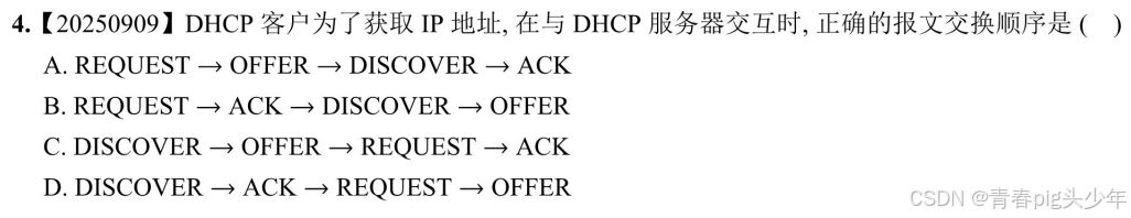 要选出这个答案并不困难,但我们可以借机复习一下DHCP的流程(发提请确)