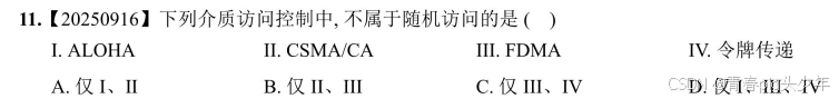 首先就可以排除CSMA/CA吧这都还要载波监听呢;还可以排除TDMA,想要划分好时隙应该需要很精准的时间同步和集中调度,相对应的硬件实现复杂度应该比较高;然后我还记得时隙ALOHA是需要时间同步的,而ALOHA比较野蛮是想发就发