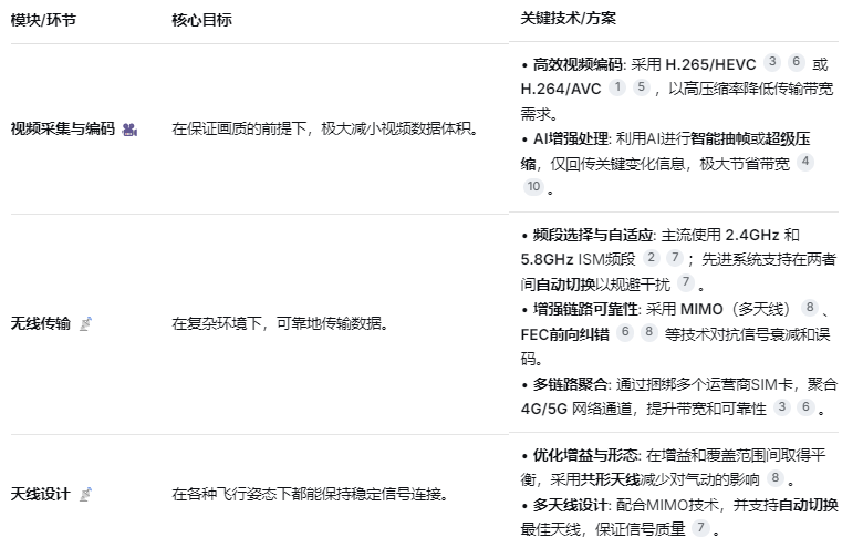 对于FPV飞行或精准远程操控,端到端延迟需控制在100毫秒以内,甚至更低(如50毫秒)。
