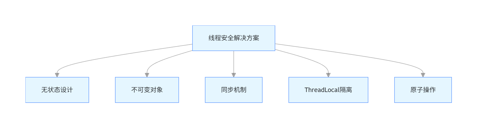 线程安全问题通常源于共享状态的修改。工具类实现线程安全的主要策略有: