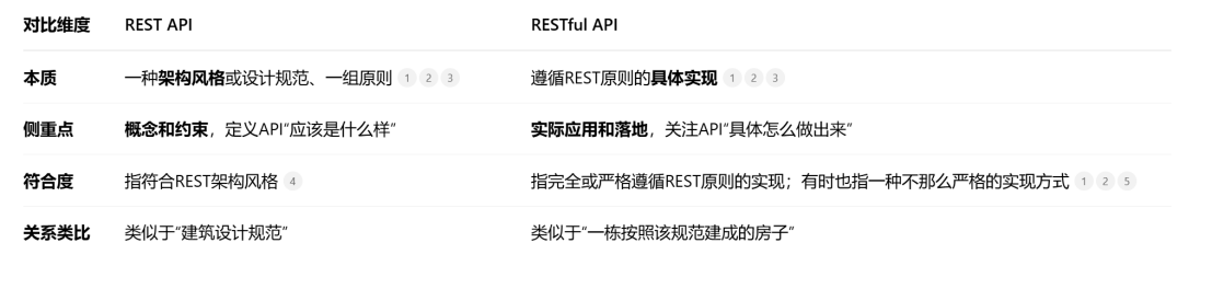 - RESTful API 和 REST API 通常指的是同一种符合 REST 架构风格的 API;