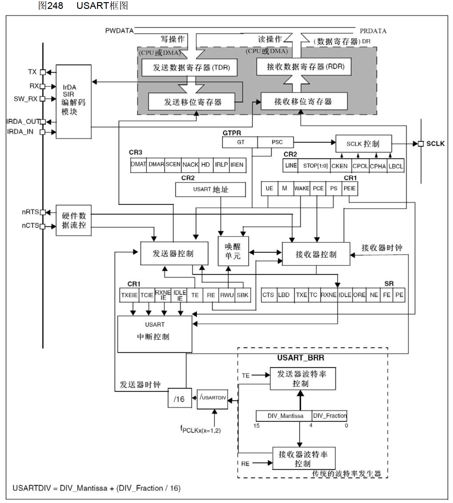 无非是多了TE、PCE使能控制分别控制发送器和接收器,USART中断控制