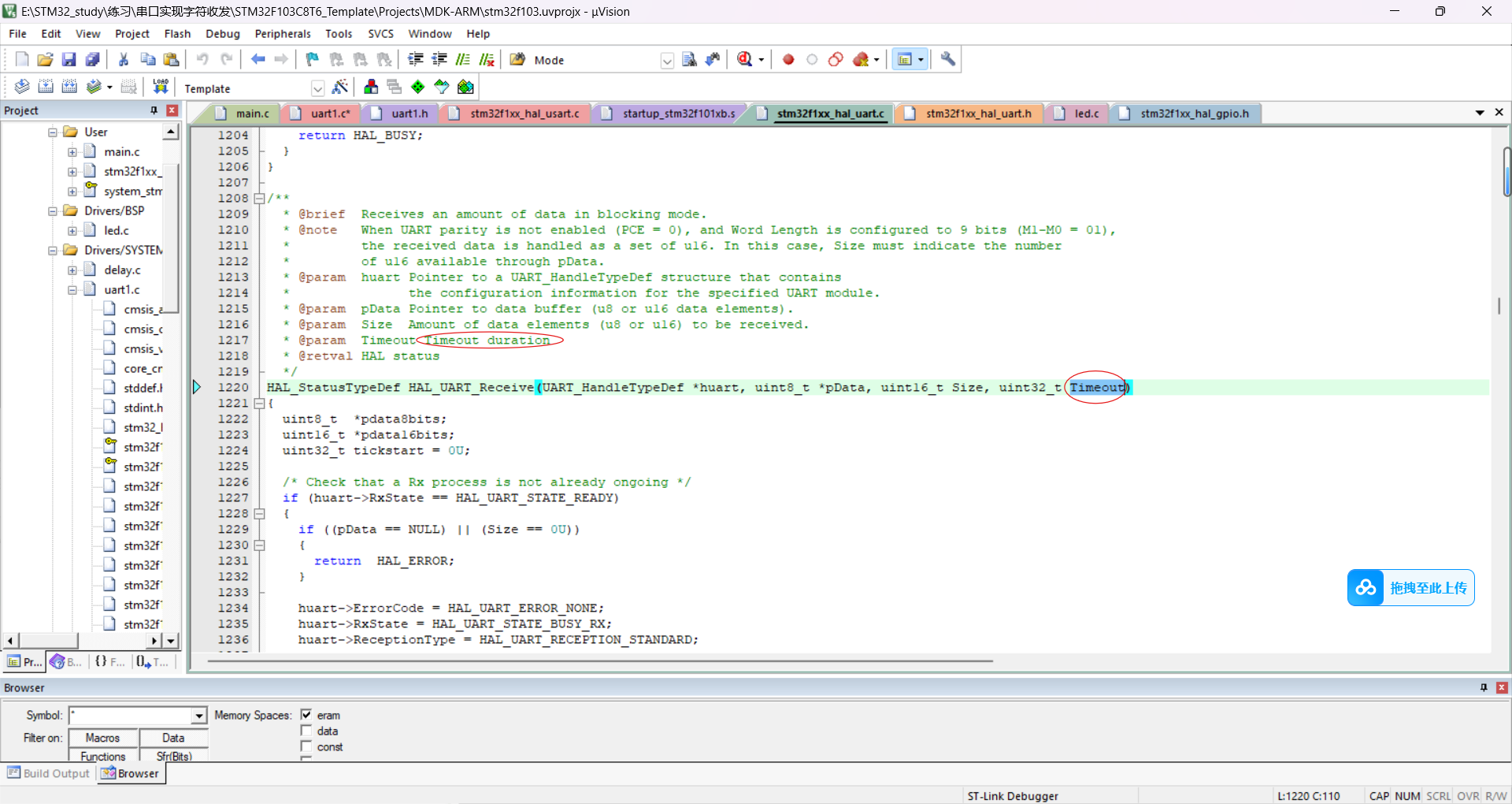 HAL_UART_Receive(&uart1_handle, &receive_data, 1, 1000);