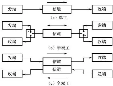 单工通信:数据只能沿一个方向传输半双工通信:数据可以沿两个方向传输,但需要分时进行全双工通信:数据可以同时进行双向传输