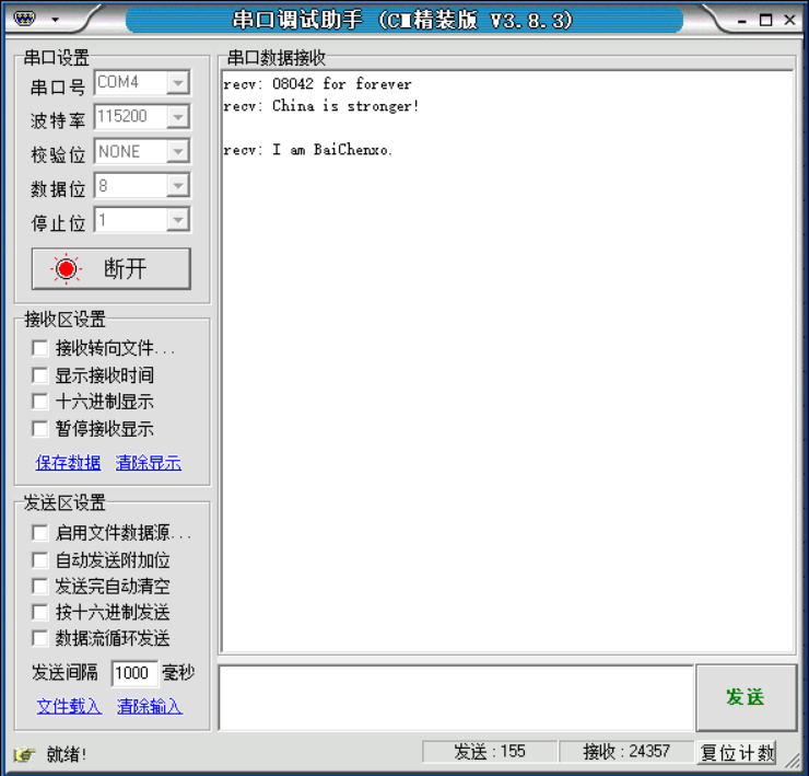 接收一个数据,触发一下中断