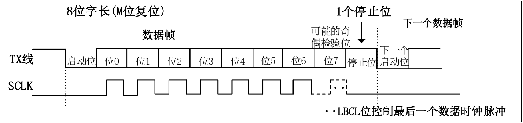 往IDR写入内容,它会把内容转运到发送移位寄存器,发送移位寄存器会将它一位一位移出去,通过GPIO口(复用TX)发送给其他设备