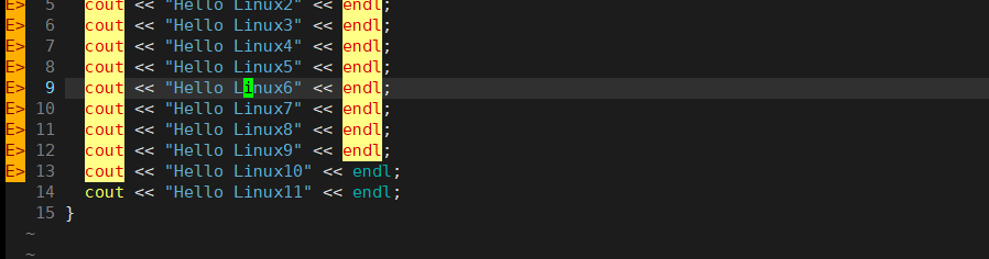 3yy:复制了三行(6,7,8),G将光标移动到最后,p粘贴