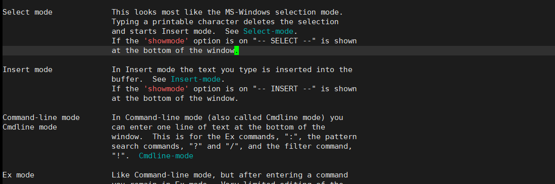 这就是命令模式主要的命令啦,现在我们来简绍底行模式
