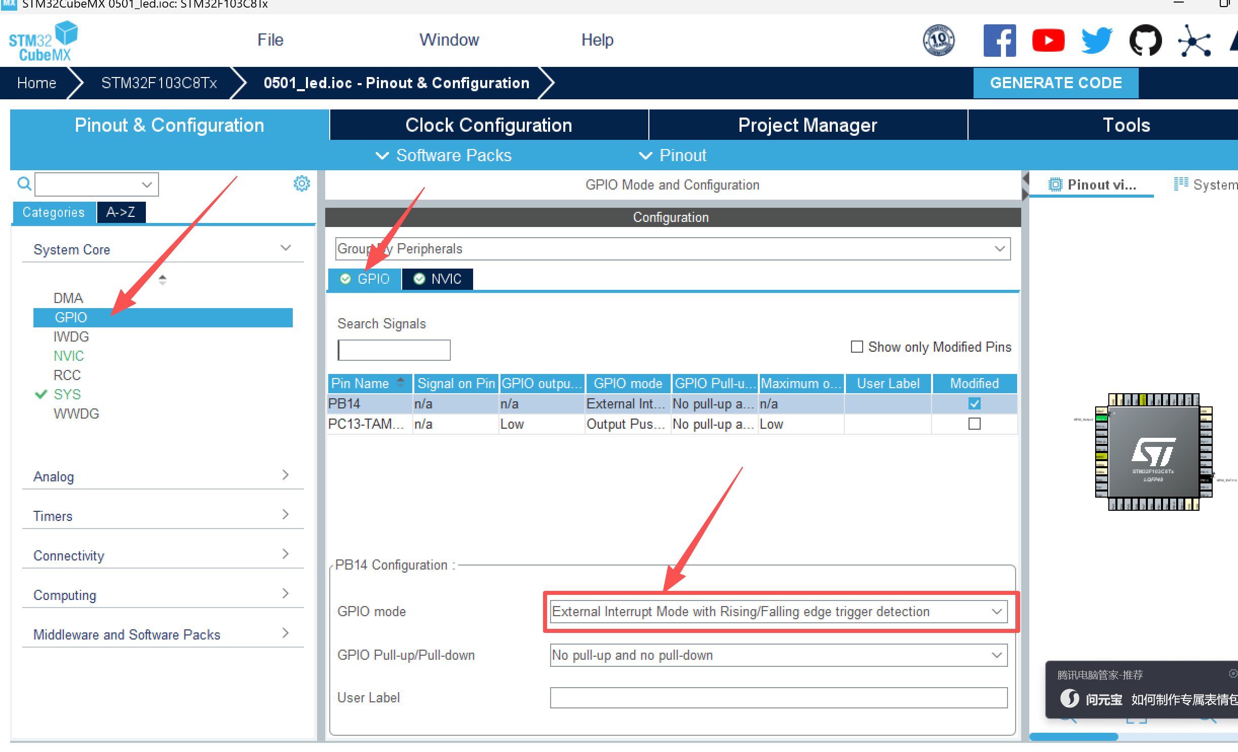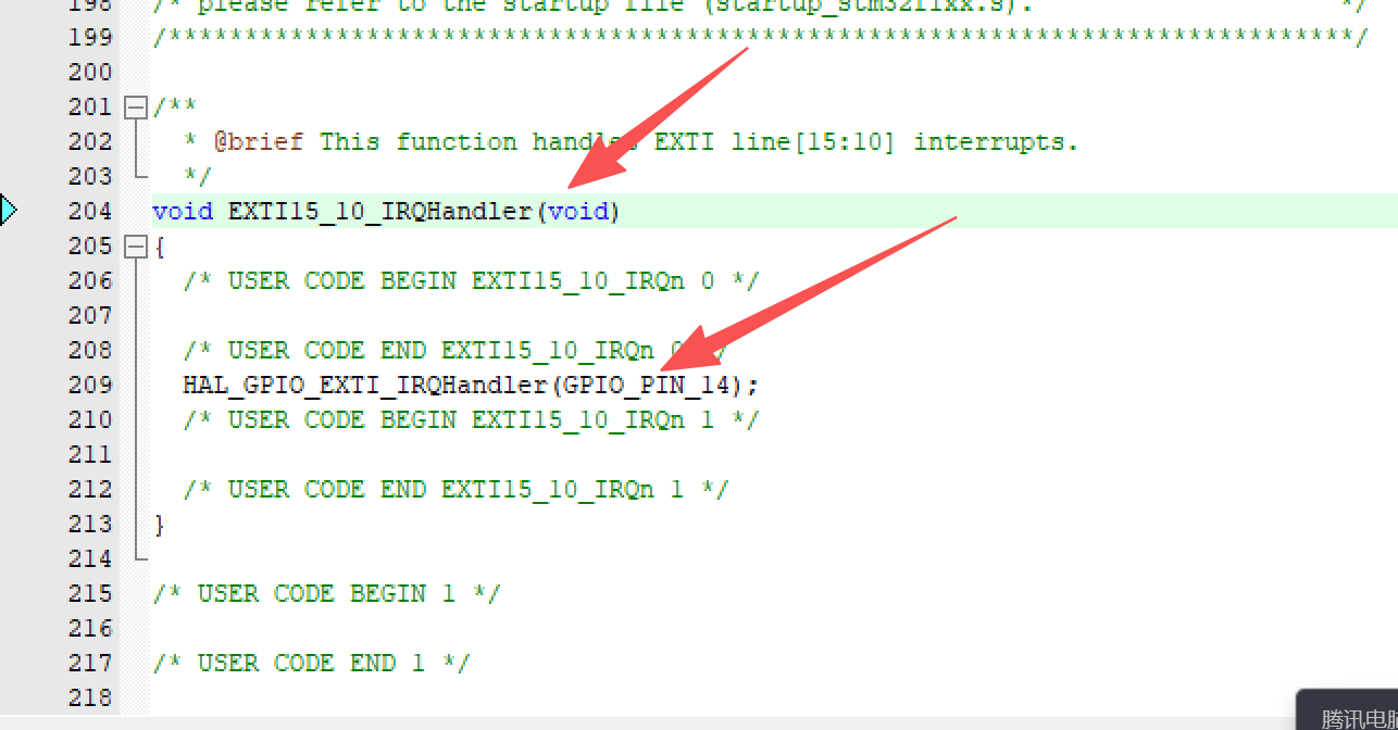 (2)中断函数涉及相关的引脚(涉及引脚14)