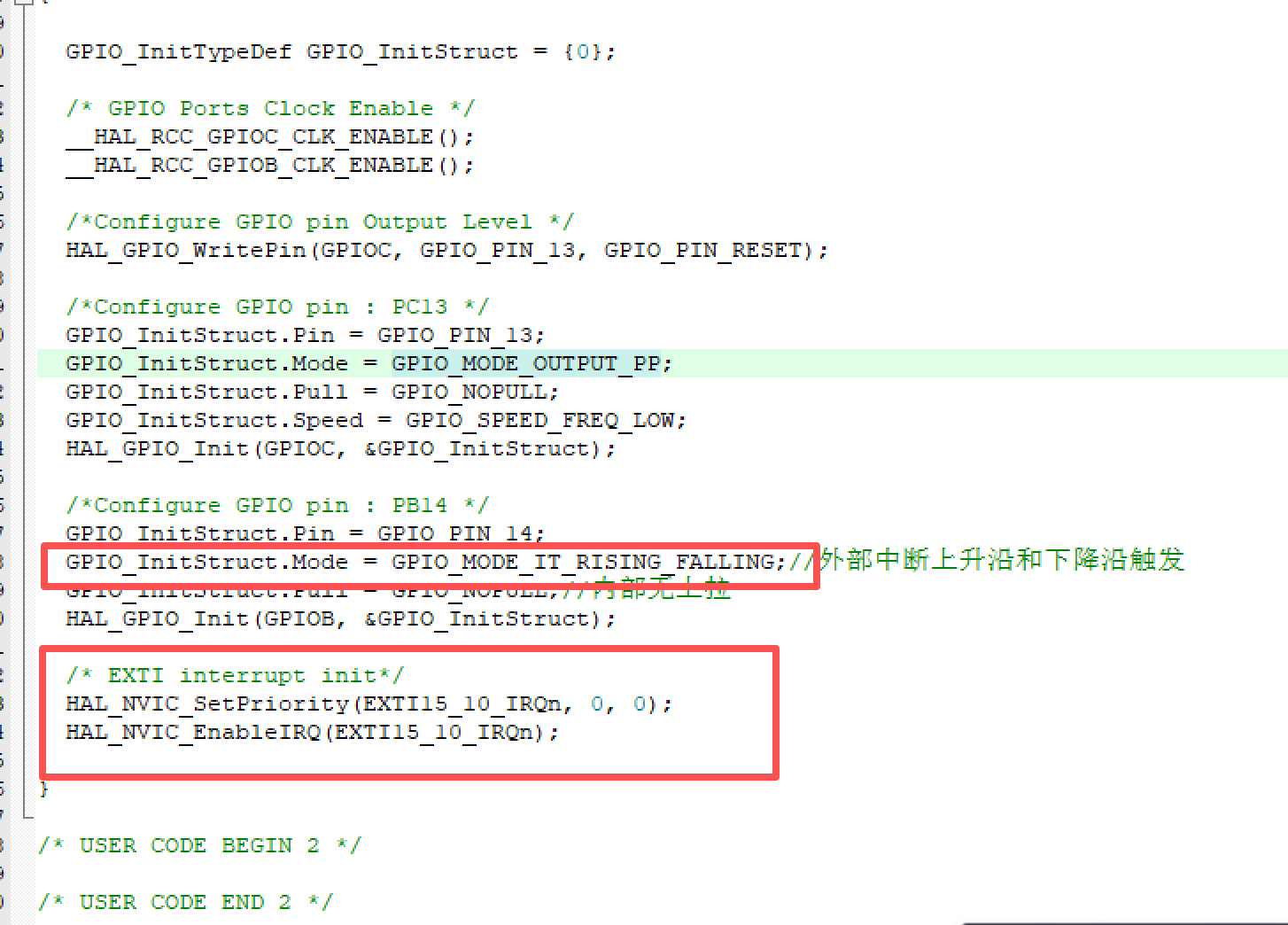 与上述设置一样,双边沿触发/同时开启NVIC中断