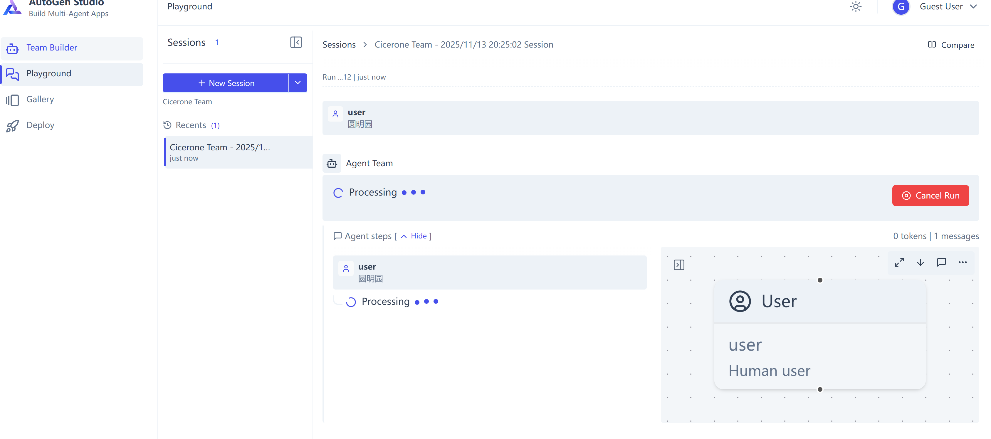 进入Playground,新建一个Session,选择你要对话的 Team: