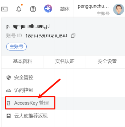 accessKeyId: 你自己阿里云账户的accessKeyId