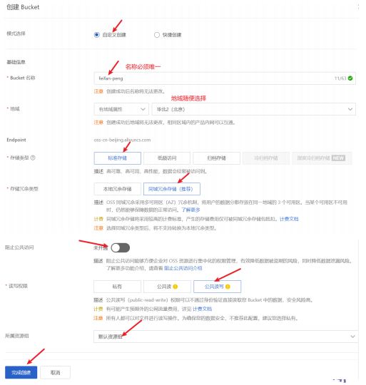 endpoint: 你自己阿里云账户的endpoint,例如:oss-cn-beijing.aliyuncs.com