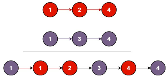 将两个升序链表合并为一个新的 升序 链表并返回。新链表是通过拼接给定的两个链表的所有节点组成的。