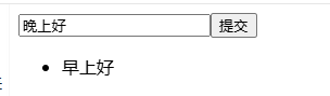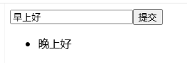 <template><input type="text" v-model="massage"><button @click="submitHandle">提交</button><br><ul ref="list"></ul></template><script>