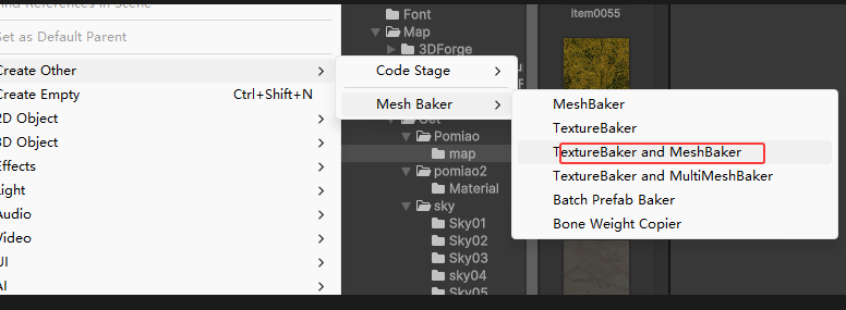 于是下载了合并工具MeshBaker,右键创建一个baker: