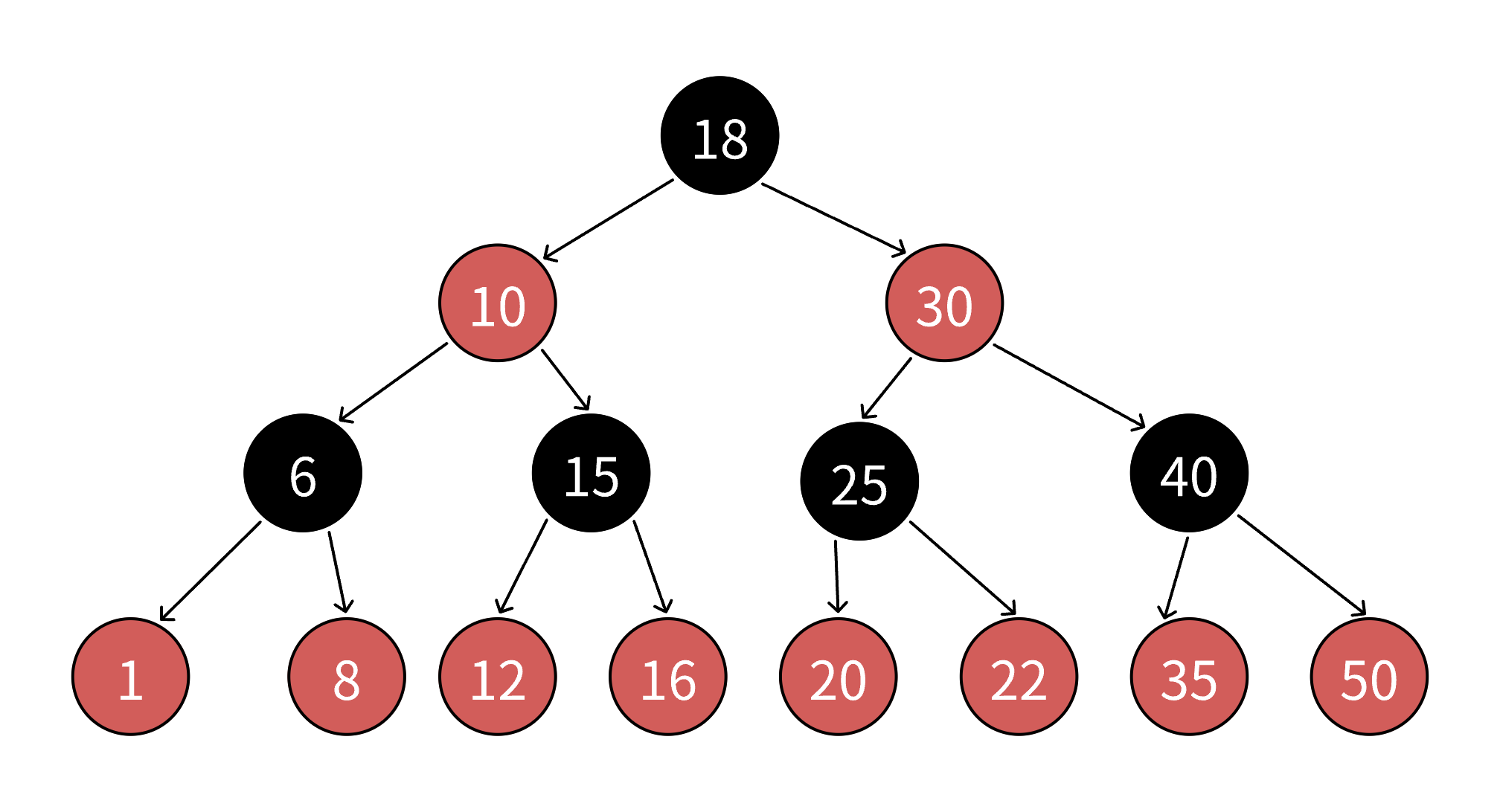 红黑树通过颜色约束来保证最长路径不超过最短路径的 2 倍: