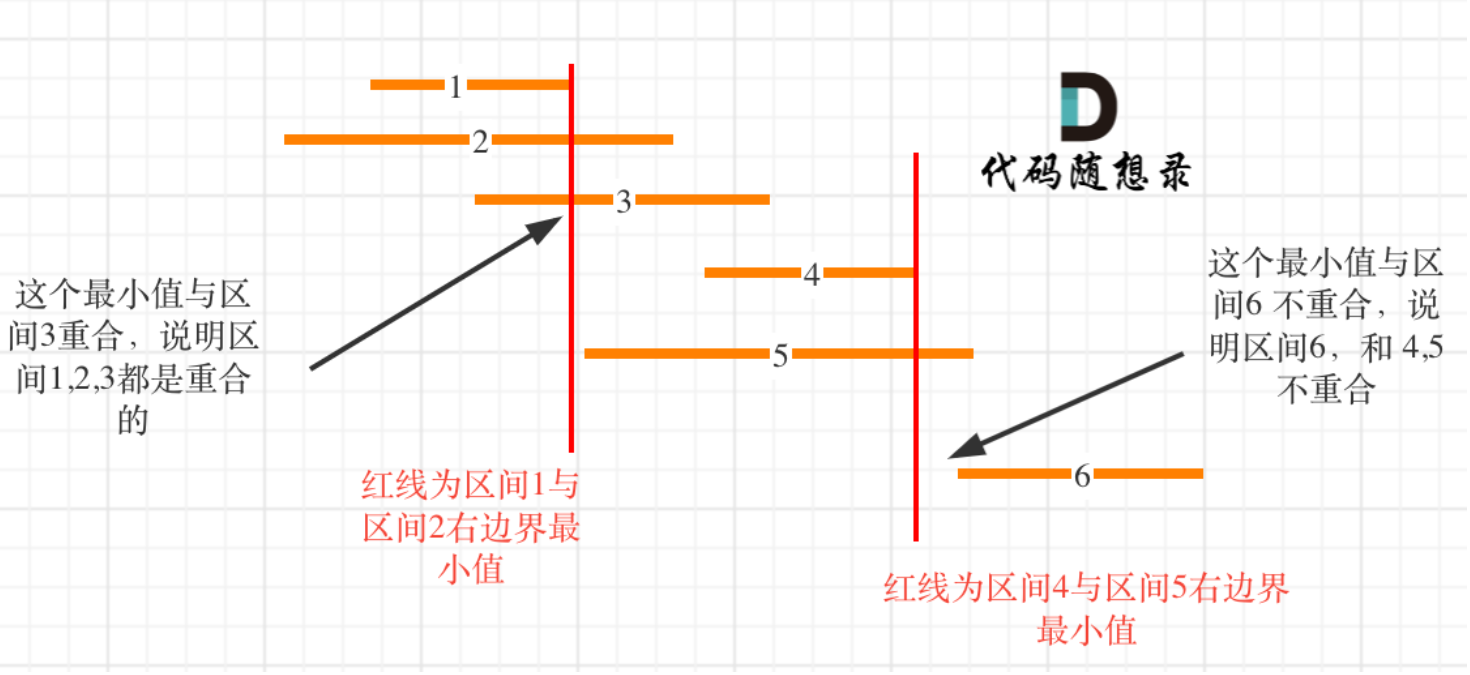 (2)接下来就是找大于区间1结束位置的区间,是从区间4开始(因为是按照右边界排序)。