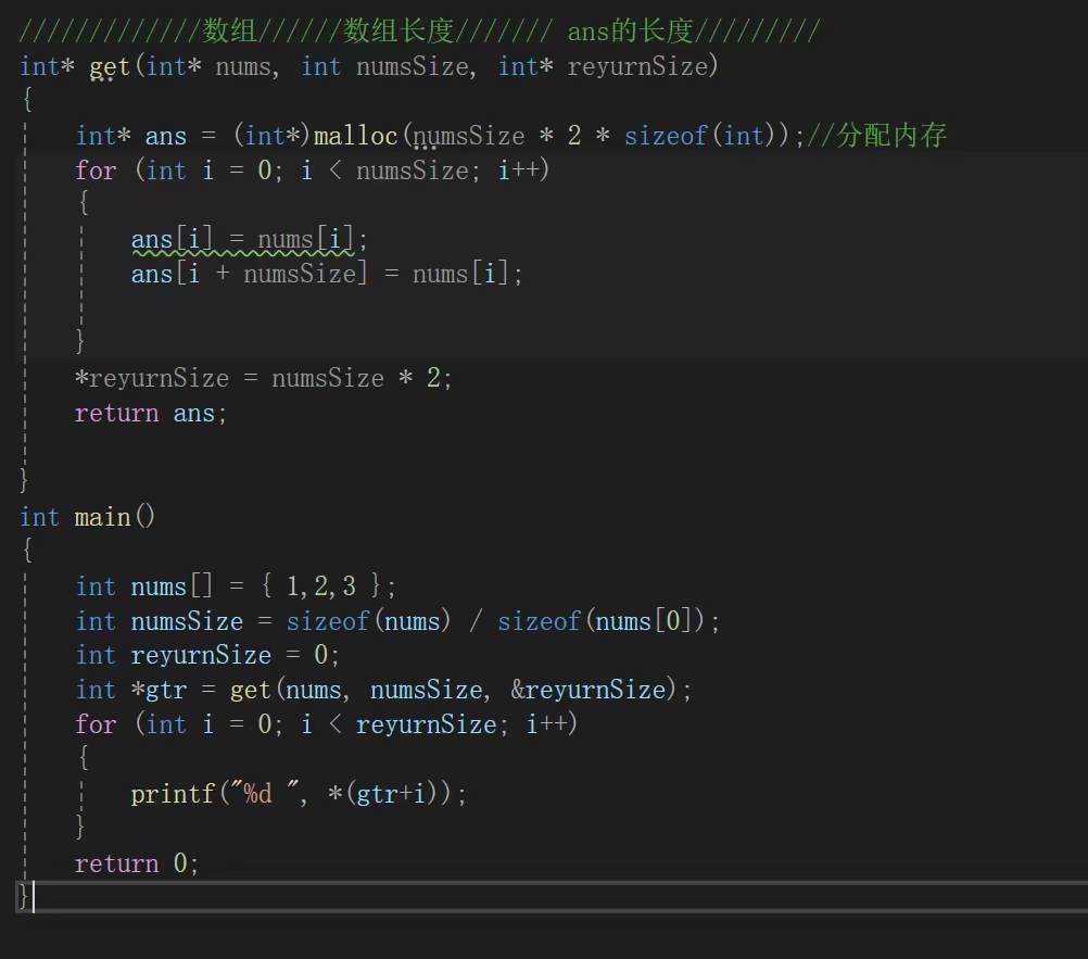 ans[i + numsSize] = nums[i]; // 新数组后半段(偏移原长度)